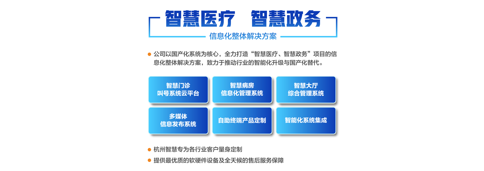杭州智慧科技有限公司初創(chuàng)于2003年,總部位于重要的電子商務(wù)中心中國杭州公司主營業(yè)務(wù)有:智慧分診叫號(hào)系統(tǒng)、智慧病房醫(yī)護(hù)對講系統(tǒng)、智慧大廳綜合管理系統(tǒng)、智慧政務(wù)管理系統(tǒng)、智慧多媒體信息發(fā)布系統(tǒng)、導(dǎo)診系統(tǒng)及各自助終端產(chǎn)品定制。專為各行業(yè)客戶量身定制。公司已有20余年行業(yè)經(jīng)驗(yàn)沉淀積累,擁有優(yōu)秀的產(chǎn)品外觀設(shè)計(jì)師和各類中高級專業(yè)技術(shù)工程師,確保所研發(fā)的產(chǎn)品具有行業(yè)領(lǐng)先的外觀及可靠的技術(shù)性能。并擁有權(quán)威部門頒發(fā)的各類知識(shí)產(chǎn)權(quán)及專利證書,30多項(xiàng)資質(zhì)證書、800多個(gè)合作伙伴、2000多個(gè)項(xiàng)目成功案例經(jīng)驗(yàn)。 智慧產(chǎn)品已遍及全國各醫(yī)療、政務(wù)、金融、通訊、公安、工商、稅務(wù)等行業(yè),形成以“立足杭州、輻射長三角、拓展全國”的戰(zhàn)略發(fā)展格局,產(chǎn)品經(jīng)過歷年不斷創(chuàng)新,形成專業(yè)化、平臺(tái)化,致力于成為智慧產(chǎn)品的領(lǐng)軍企業(yè)。 公司建立了完善的技術(shù)培訓(xùn)及售后服務(wù)中心,并設(shè)24小時(shí)熱線咨詢電話解答用戶反饋的問題。同時(shí)應(yīng)客戶要求定期派技術(shù)人員到 全國各地進(jìn)行技術(shù)指導(dǎo)輔助用戶正確使用智慧產(chǎn)品并能獨(dú)立安裝、調(diào)試、日常維護(hù)等工作。提供最優(yōu)質(zhì)的設(shè)備及全天候的售后服務(wù)保障,智慧永恒不變的服務(wù)宗旨——致力于客戶的滿意與成功!...